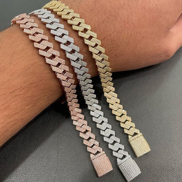 12mm Moissanite Cuban Link Baguette Diamond Bracelet