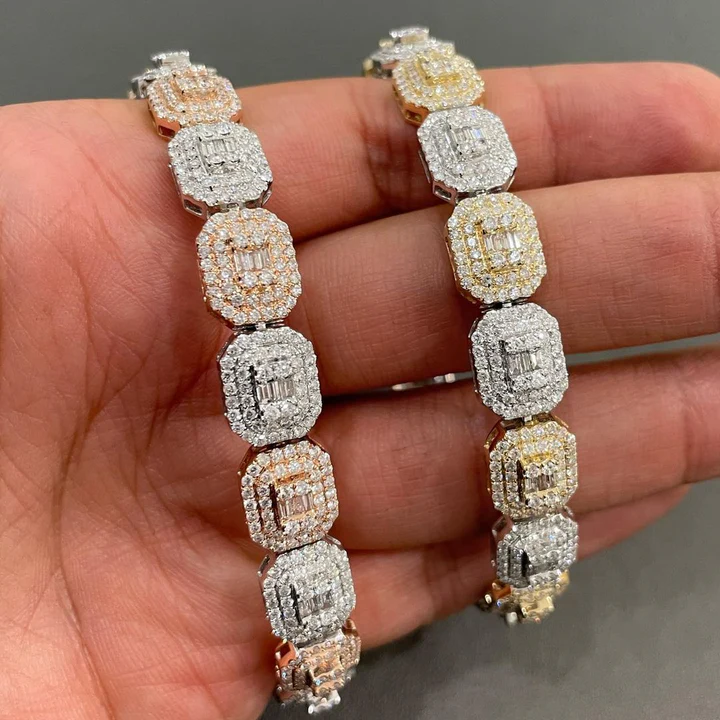 Square Shape Moissanite Baguette Diamond Tennis Bracelet