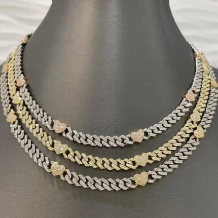 The 10MM Moissanite Cuban Link Chain Heart Choker blends bold streetwear style with soft romantic charm, creating a high-impact piece that stands out in any jewelry collection. This choker merges the brilliance of moissanite stones, the strength of a Cuban link chain, and the symbolic elegance of a heart pendant all in one luxurious accessory.