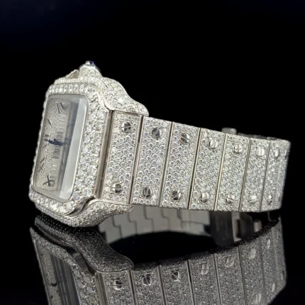 Moissanite Cartier Santos watches are attractive products for consumers looking for luxury but less expensive options. Those who buy these items value how they look and admire the artistry that defines each watch made from moissanite stones. Cartier Santos Iced Out watches are among the best options available at Imaxbuds for enthusiasts of these luxurious timepieces.