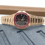 Patek Philippe Nautilus Ruby Bezel Watch is a luxury timepiece that combines iconic design with bold elegance. Featuring the signature Nautilus case and a bezel set with vibrant rubies, it’s both timeless and unique. People will always like it because it blends Patek Philippe’s legendary craftsmanship with the striking beauty of precious stones, making it a true collector’s piece.
